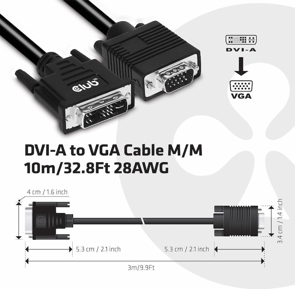 Club 3D - Videokabel - DVI-A (M) bis HD-15 (VGA) (M) - 3 m - Daumenschrauben, hauchvergoldete Kontakte