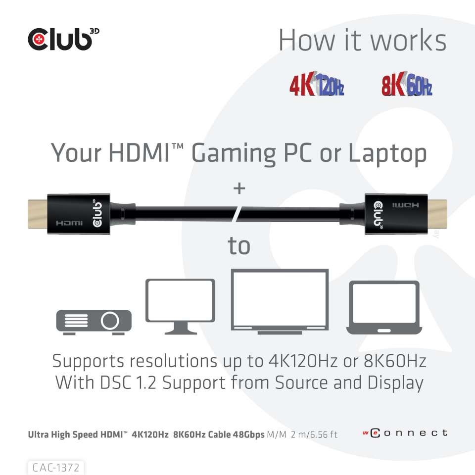 Alle HDMI-2.1-Funktionen werden von diesem Club3D CAC-1372 Kabel voll unterstützt. Es ist die ideale Lösung für das ultimative, zukunftssichere HDMI-Erlebnis.