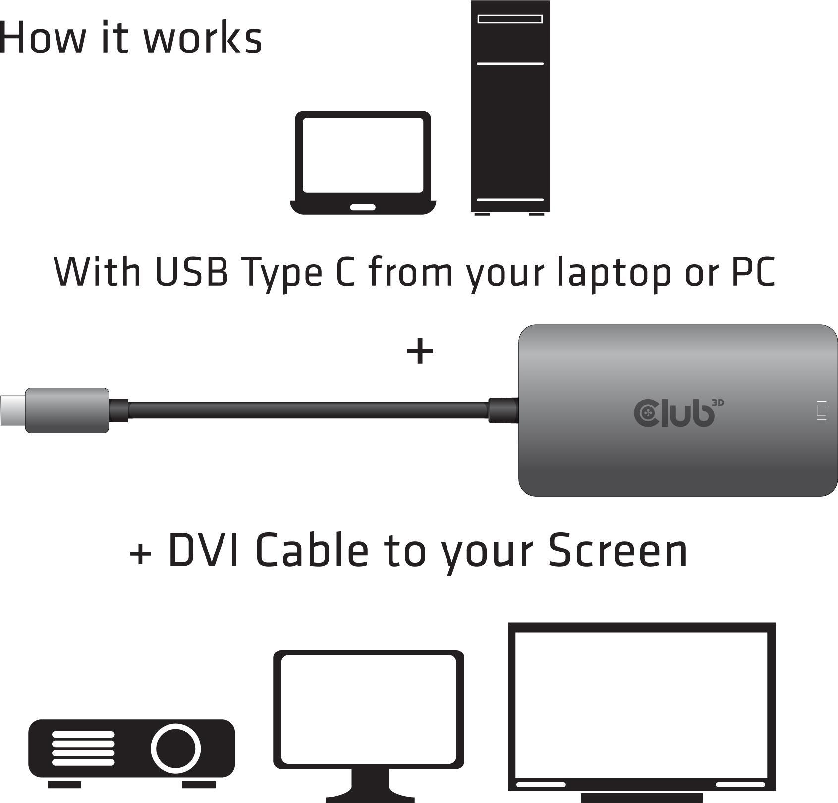 Club 3D - Videoadapter - USB-C männlich zu DVI-I weiblich - 4K Unterstützung (CAC-1510)