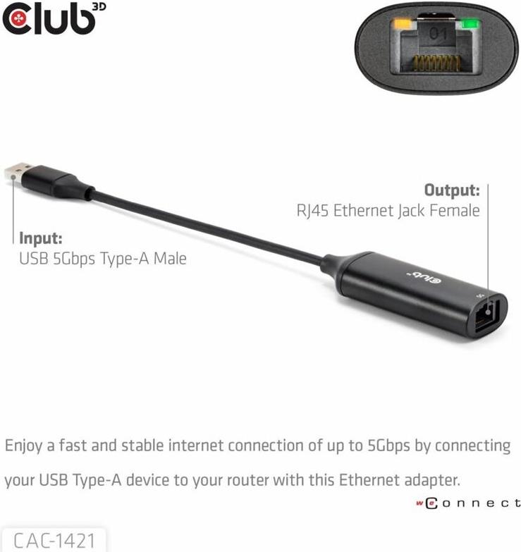 Der Club 3D CAC-1421 ist ein USB 3.2 Gen 1-Netzwerkadapter, der entwickelt wurde, um Ihre kabelgebundene Konnektivität zu verbessern. Mit seinem kompakten, integrierten Formfaktor und einer Länge von 12 cm bietet dieser Adapter bequeme Mobilität und einfache Installation. Ausgestattet mit einem RJ-45-Buchsenanschluss unterstützt er eine Datenübertragungsrate von bis zu 5 Gbit/s und gewährleistet so schnelle und effiziente Netzwerkfunktionen. Dieser externe Netzwerkadapter entspricht den FCC-, RoHS- und EMI-Standards und bietet zuverlässige Leistung bei gleichzeitigem Schutz der Umwelt. Er unterstützt verschiedene Datenverbindungsprotokolle, darunter Fast Ethernet, Gigabit Ethernet und 5 Gigabit Ethernet, und eignet sich somit für unterschiedliche Netzwerkanforderungen. Der Club 3D-Adapter verfügt außerdem über Wake On LAN, USB-Pass-Through und VLAN-Modus und bietet somit Flexibilität für eine effektive Verwaltung von Netzwerkkonfigurationen.
