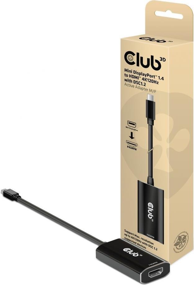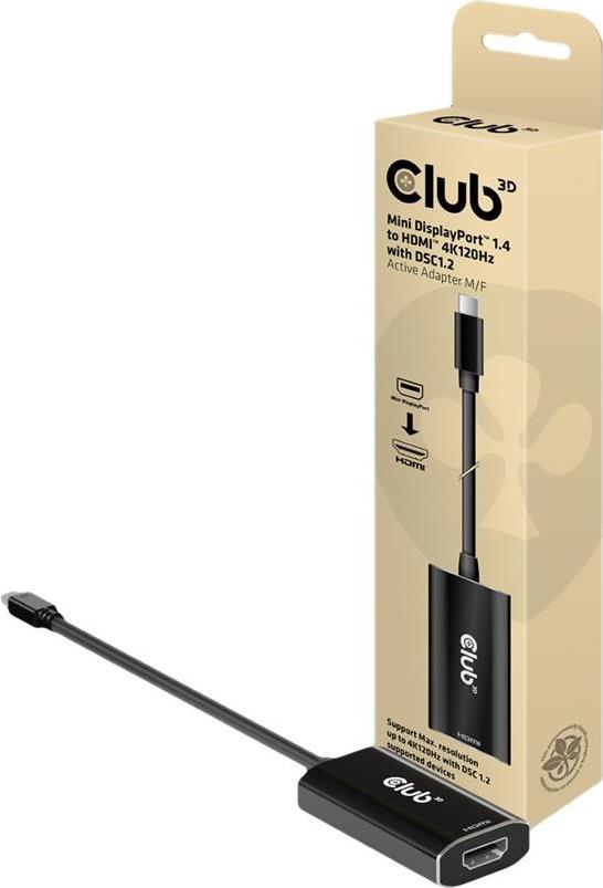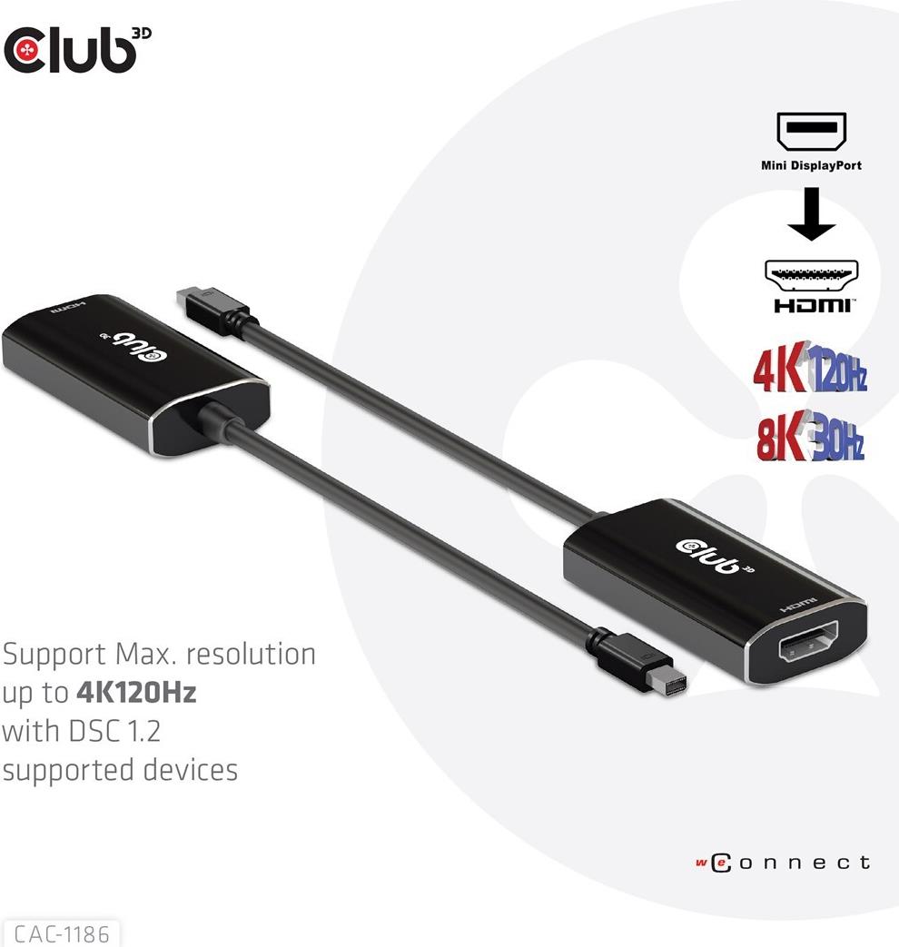 Club 3D CAC-1186 - Adapterkabel - Mini DisplayPort männlich bis HDMI weiblich - 15 cm - aktiv, unidirektional, Support von 8K 30 Hz, unterstützt 4K 120 Hz (3840 x 2160)