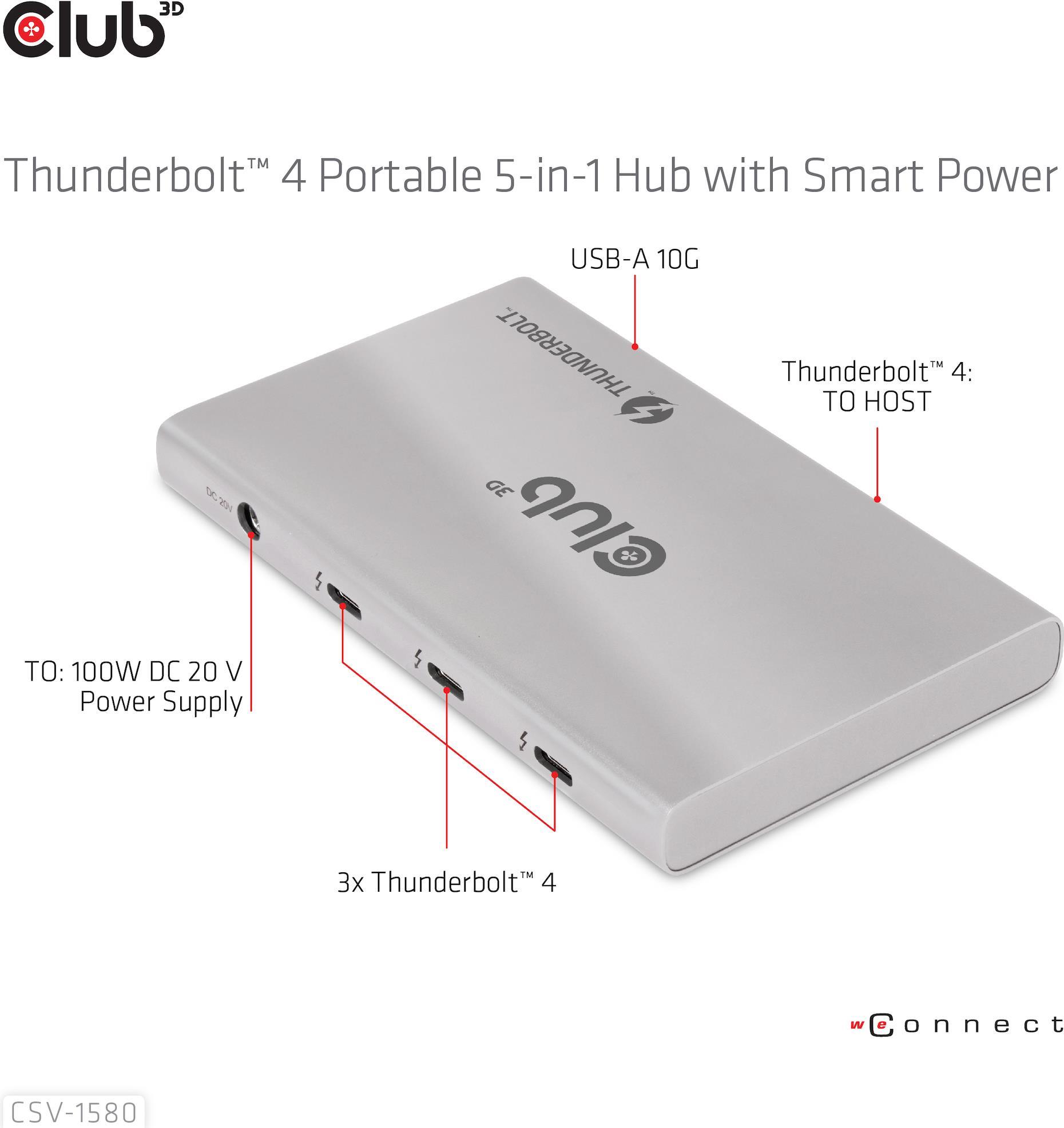 Club3D Thunderbolt 4 Portable 5-in-1 Hub with Smart Power - Dockingstation - Thunderbolt 4 |