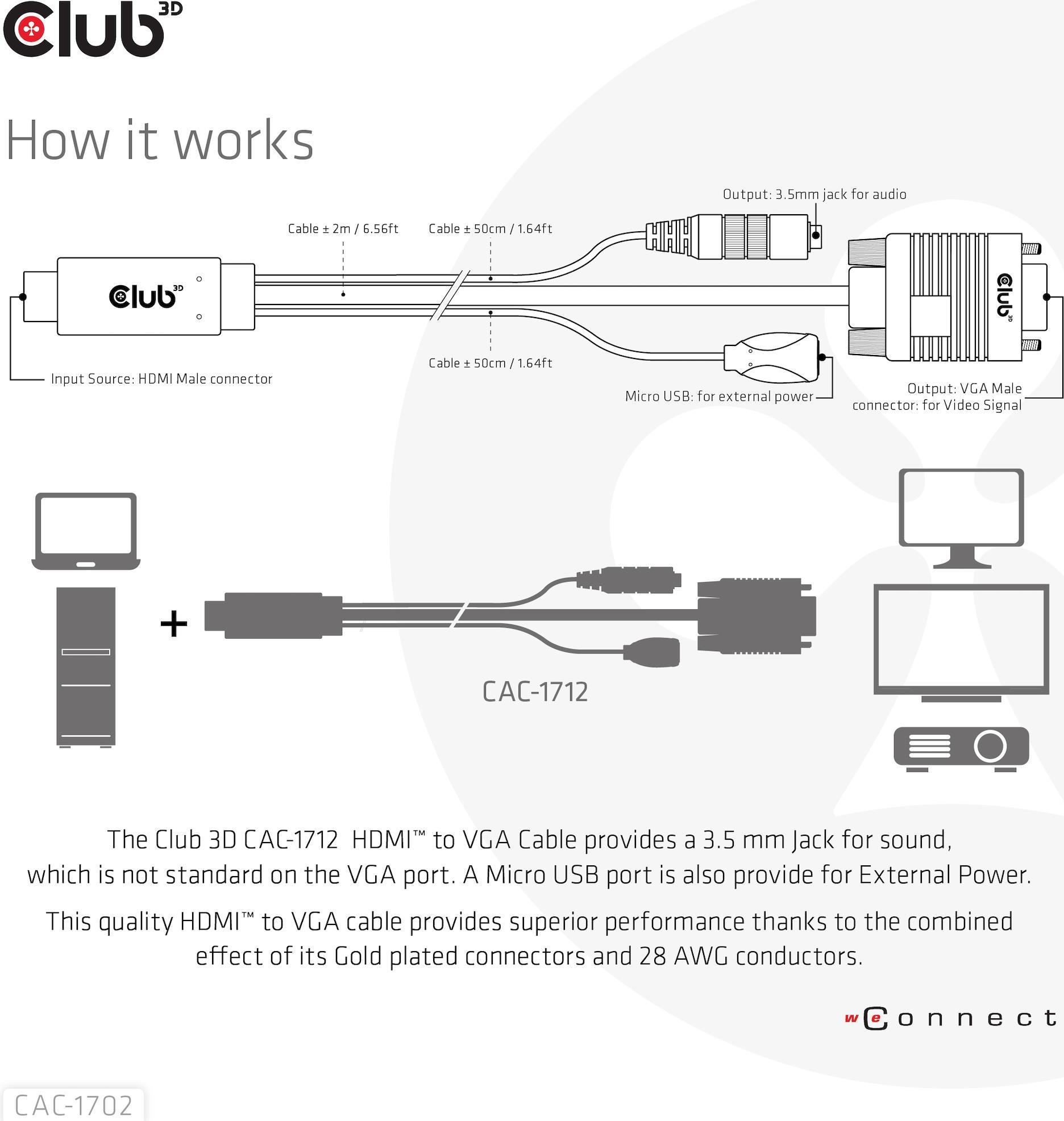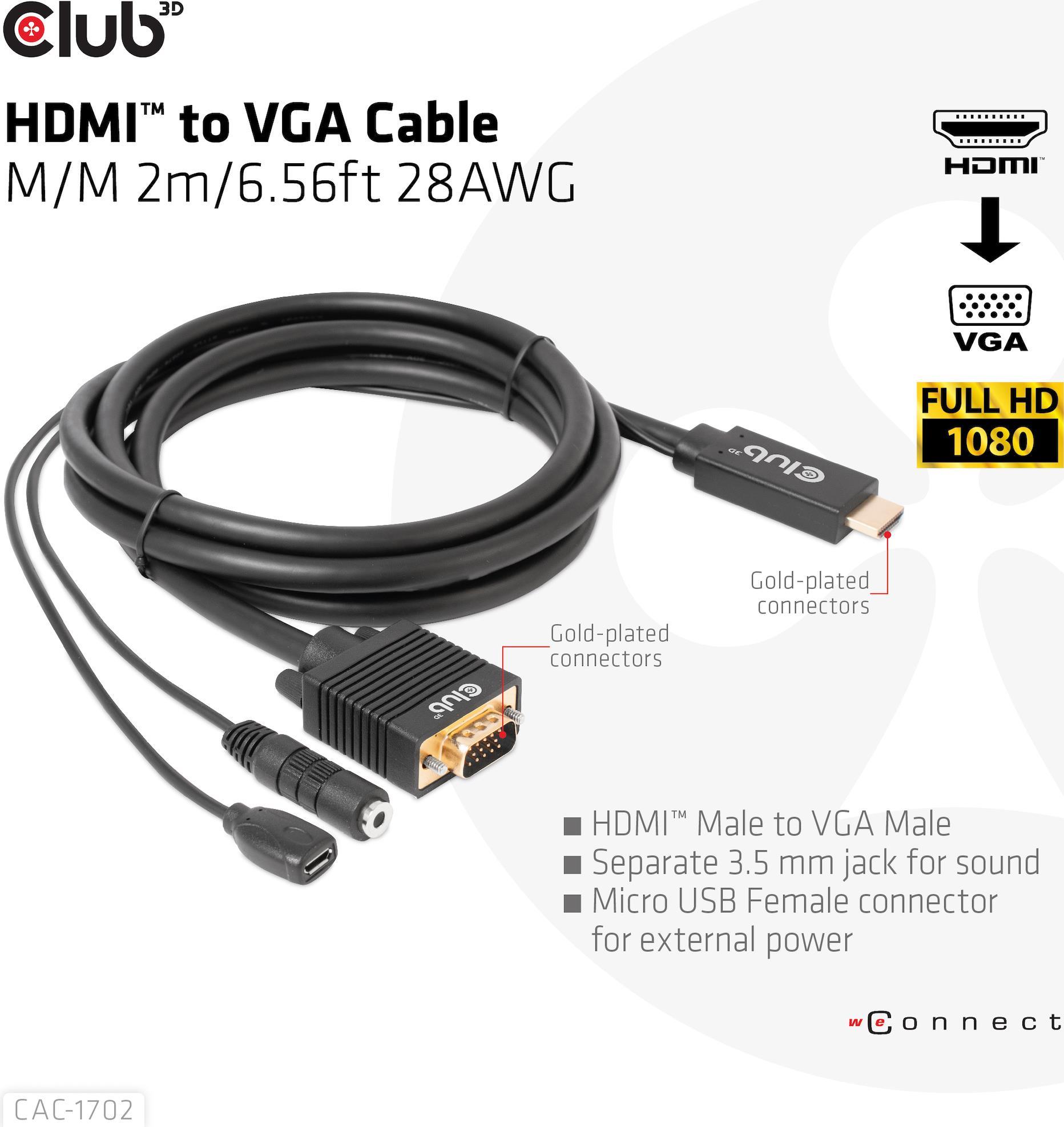 | Produktbeschreibung | Club 3D Adapterkabel - HDMI / VGA / Audio - 2 m |