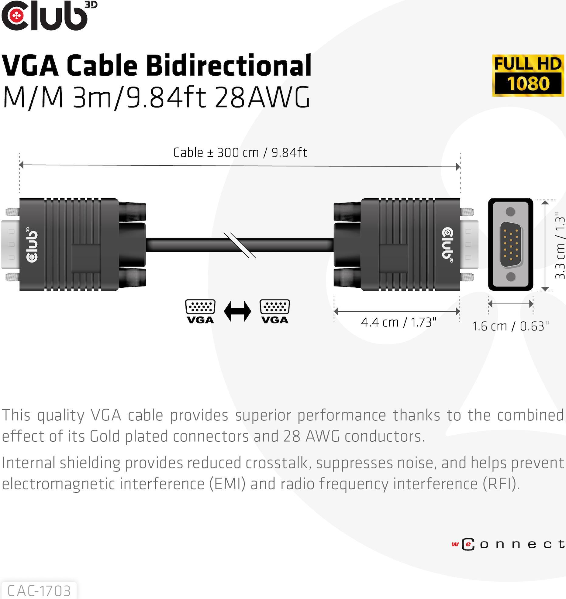 Club 3D - VGA-Kabel - HD-15 (VGA) (M) zu HD-15 (VGA) (M) - 3 m - 1080p-Unterstützung