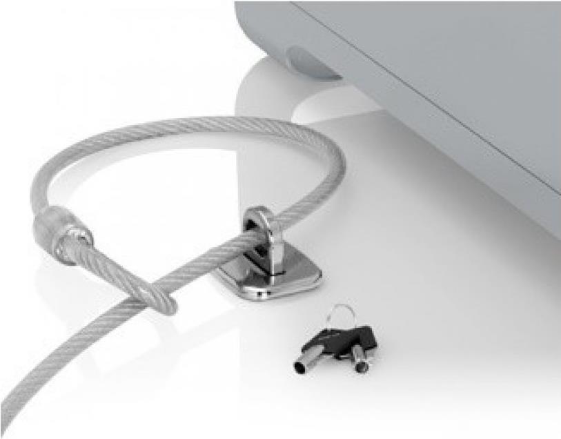 Das universelle Tablet-Schloss ist einfach zu bedienen und einfach zu montieren. Kleben Sie die Sicherungsplatte auf das Tablet, lassen Sie den Kleber aushärten, legen Sie das Kabel um einen festen Gegenstand und verbinden Sie das Kabelschloss mit der Platte auf Ihrem Tablet. Fertig!