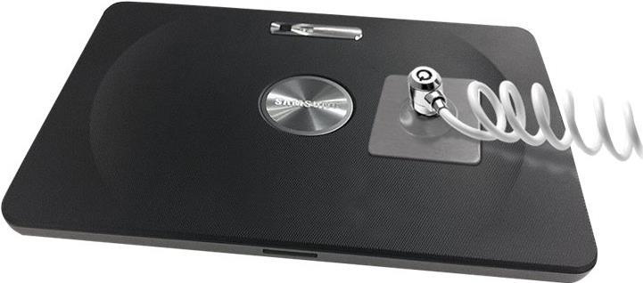 Das Universal-Tablet-Schloss umfasst eine selbstklebende Sicherungsplatte mit integriertem Anschluss für Diebstahlsicherung und ein Spiralkabelschloss zum Schutz vor Diebstahl. Dieses zweiteilige Set, das sich ideal sowohl für den privaten als auch den beruflichen Einsatz eignet, ist ein Bestseller auf dem Bildungs- und Messemarkt.