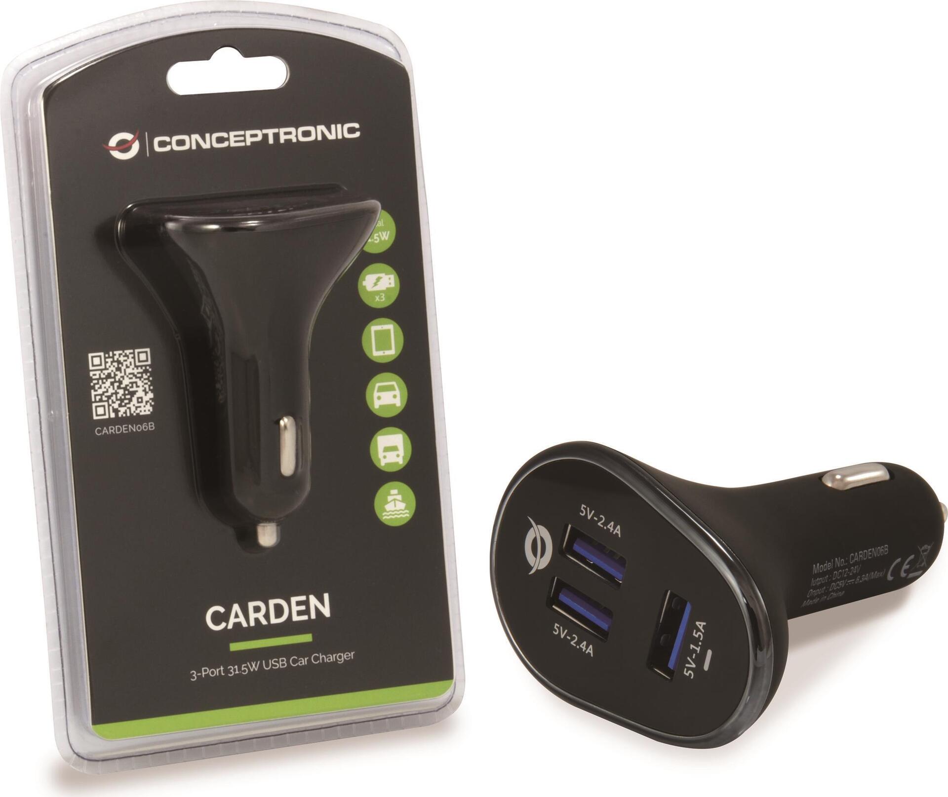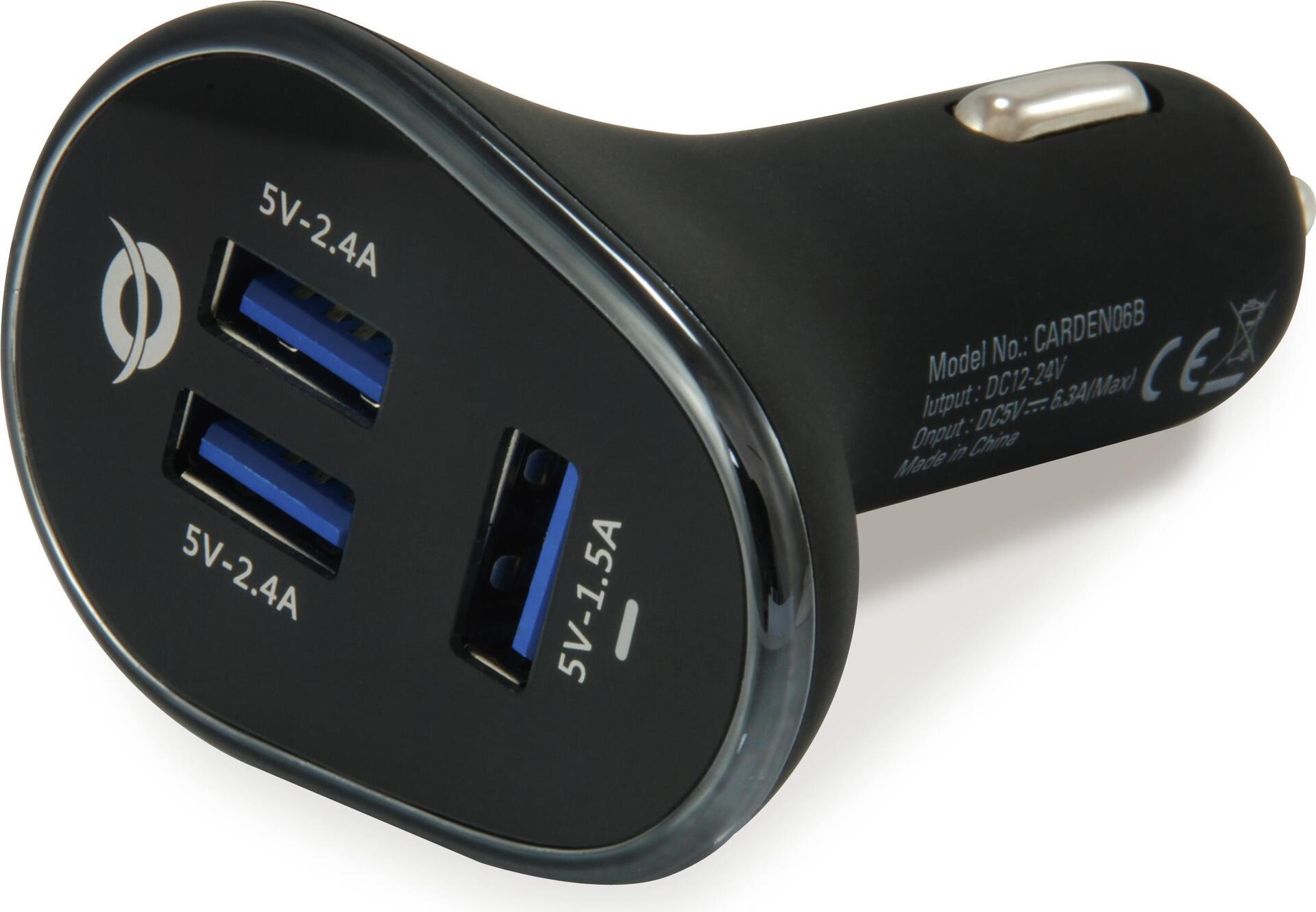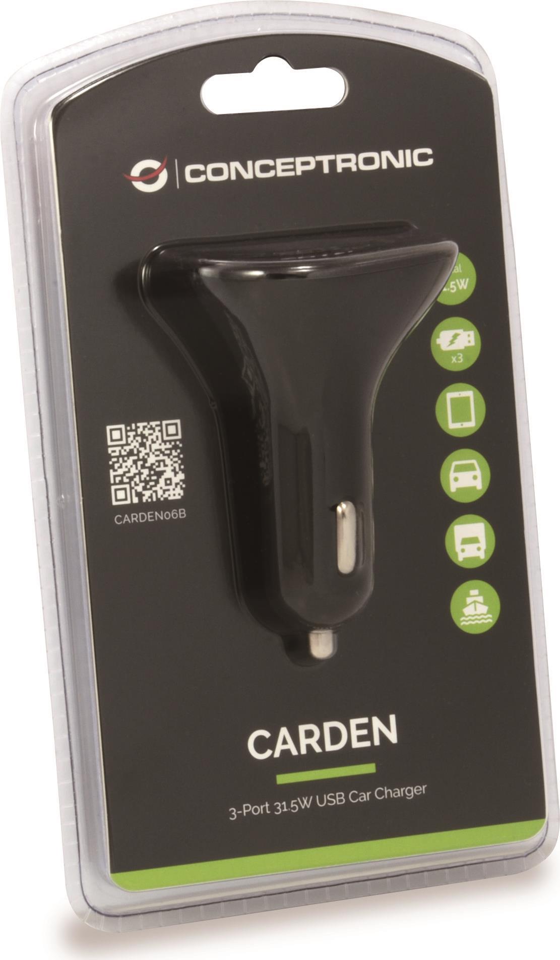 Conceptronic 3-Port USB Car Charger, 31.5W (CARDEN06B)