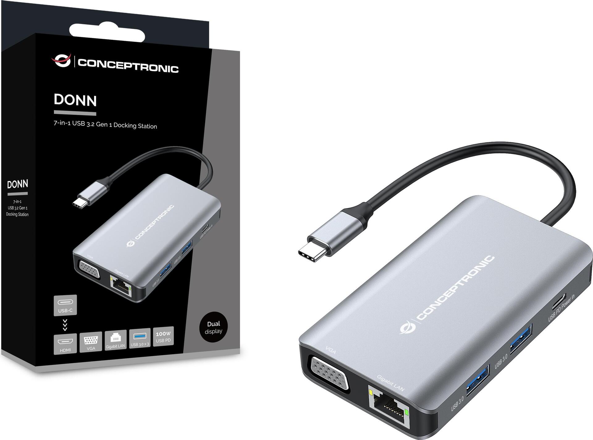 | Produktbeschreibung | Conceptronic DONN21G - Dockingstation - USB-C 3.2 Gen 1 - HDMI, VGA |