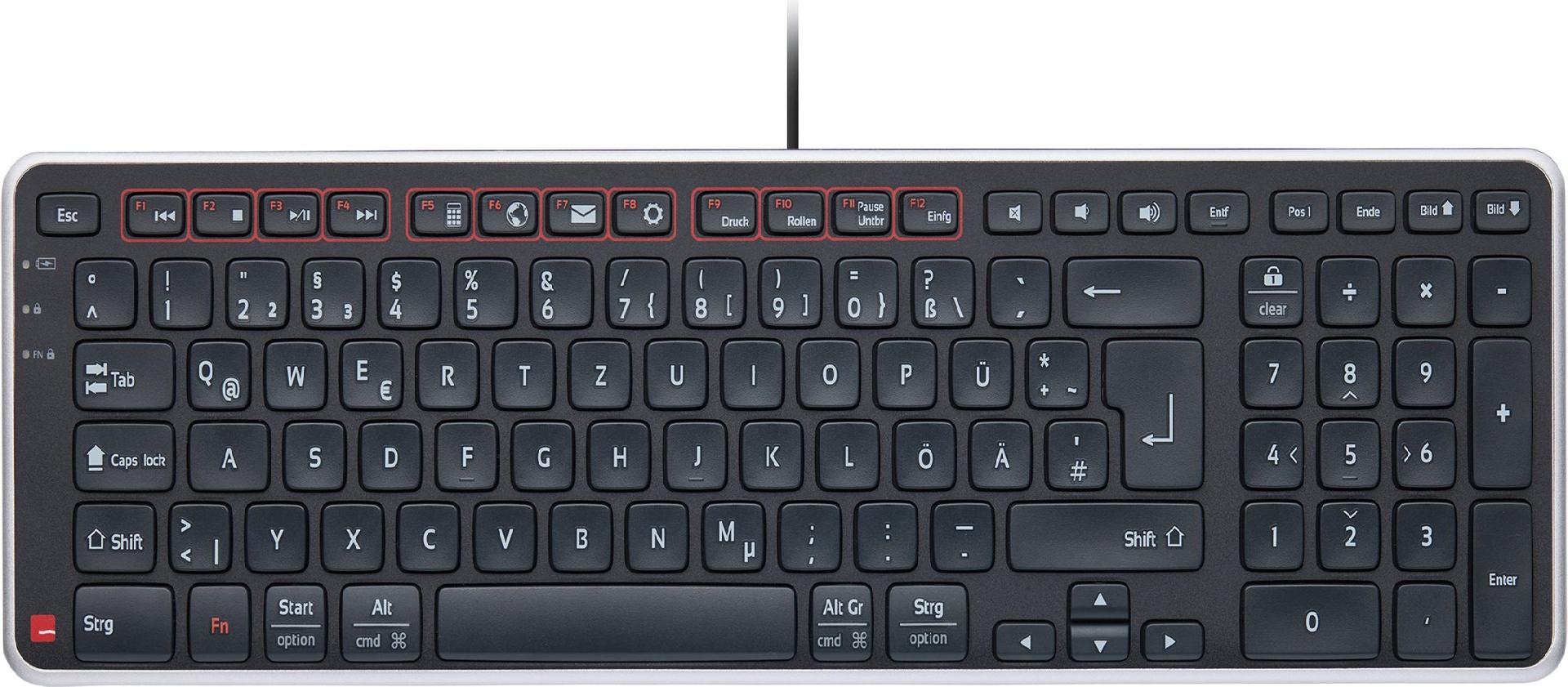 Maximale Schmerzlinderung mit der Balance Tastatur, die auf die RollerMouse- und SliderMouse-Modelle abgestimmt ist. Durch die identische Höhe von Tastatur und diesen zentrierten Mäusen, minimiert sich der Abstand zwischen den Tasten und dem Rollstab oder dem verschiebbaren Navigationspad. So ist ein müheloser Wechsel zwischen Tippen und Navigieren möglich. Die einstellbare Abwärtsneigung trägt dazu bei, eine natürliche Handgelenksposition beizubehalten, indem die Linie des Handgelenks nicht unterbrochen wird. So werden Muskeln und Sehnen nicht belastet und Ihre Arme bleiben in einer bequemen, natürlichen Position vor Ihrem Körper. Noch mehr Unterstützung für Hand und Handgelenk erhalten Sie mit der der Balance Tastatur Handballenauflage. Die Breite der Balance Tastatur ist perfekt auf die RollerMouse Red abgestimmt, so dass Sie die optimale zentrale Ausrichtung zwischen Händen, Körper, Tastatur und Maus beibehalten können, um Belastungen und Schmerzen zu reduzieren.