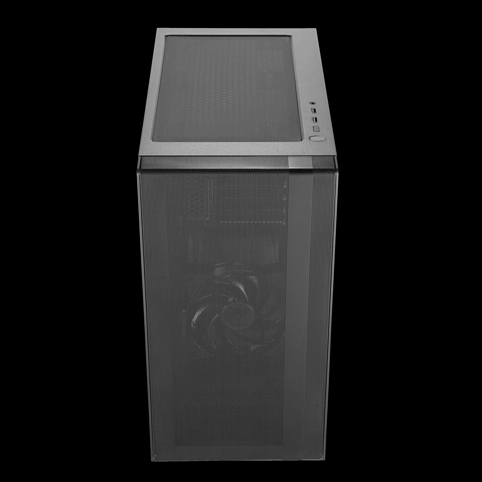 | Systemgehäuse-Merkmale | Seitenwand mit Fenster, Gitterfrontabdeckung, Gitter auf Oberseite, unterstützt Radiator (120 mm) in der Rückseite, Staubfilter unten, unterstützt 120/140/240/280 mm Radiator in Vorderwand, Support für 120/240 mm Radiator oben, magnetischer Staubfilter oben |
