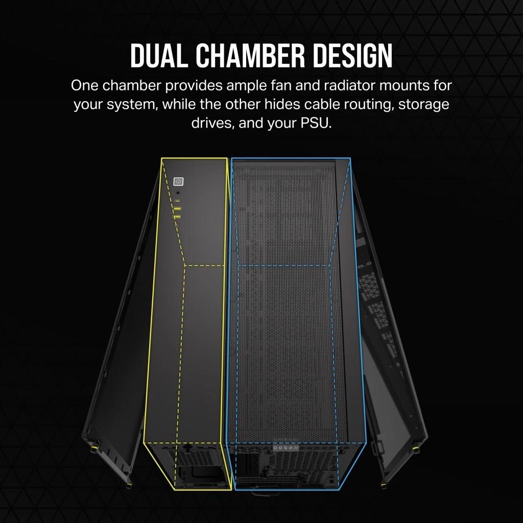 Das CORSAIR 2500X Mid-Tower-Gehäuse ist eine Mischung aus Funktionalität und Stil, die auf die Bedürfnisse von Gamern und PC-Enthusiasten zugeschnitten ist. Mit seinem geräumigen Zweikammer-Layout bietet es Platz für Hochleistungskomponenten und gewährleistet gleichzeitig eine effiziente Kühlung und ein einfaches Kabelmanagement. Das Gehäuse unterstützt eine Vielzahl von Kühloptionen, darunter mehrere Lüfterhalterungen und Radiatoren, um Ihr System bei optimalen Temperaturen zu betreiben. Die Seitenabdeckung aus gehärtetem Glas trägt nicht nur zur Ästhetik bei, sondern ermöglicht auch eine einfache Überwachung des Systeminneren. Darüber hinaus ist das Gehäuse mit praktischen Anschlüssen auf der Vorderseite ausgestattet, darunter USB-C 3.2 Gen 2 und USB 3.2 Gen 1, die einen einfachen Zugang zum Anschließen von Geräten ermöglichen. Egal, ob Sie ein Gaming-Rig oder eine Hochleistungs-Workstation bauen, das CORSAIR 2500X bietet die Vielseitigkeit, Kühleffizienz und das schlanke Design, das Sie brauchen.