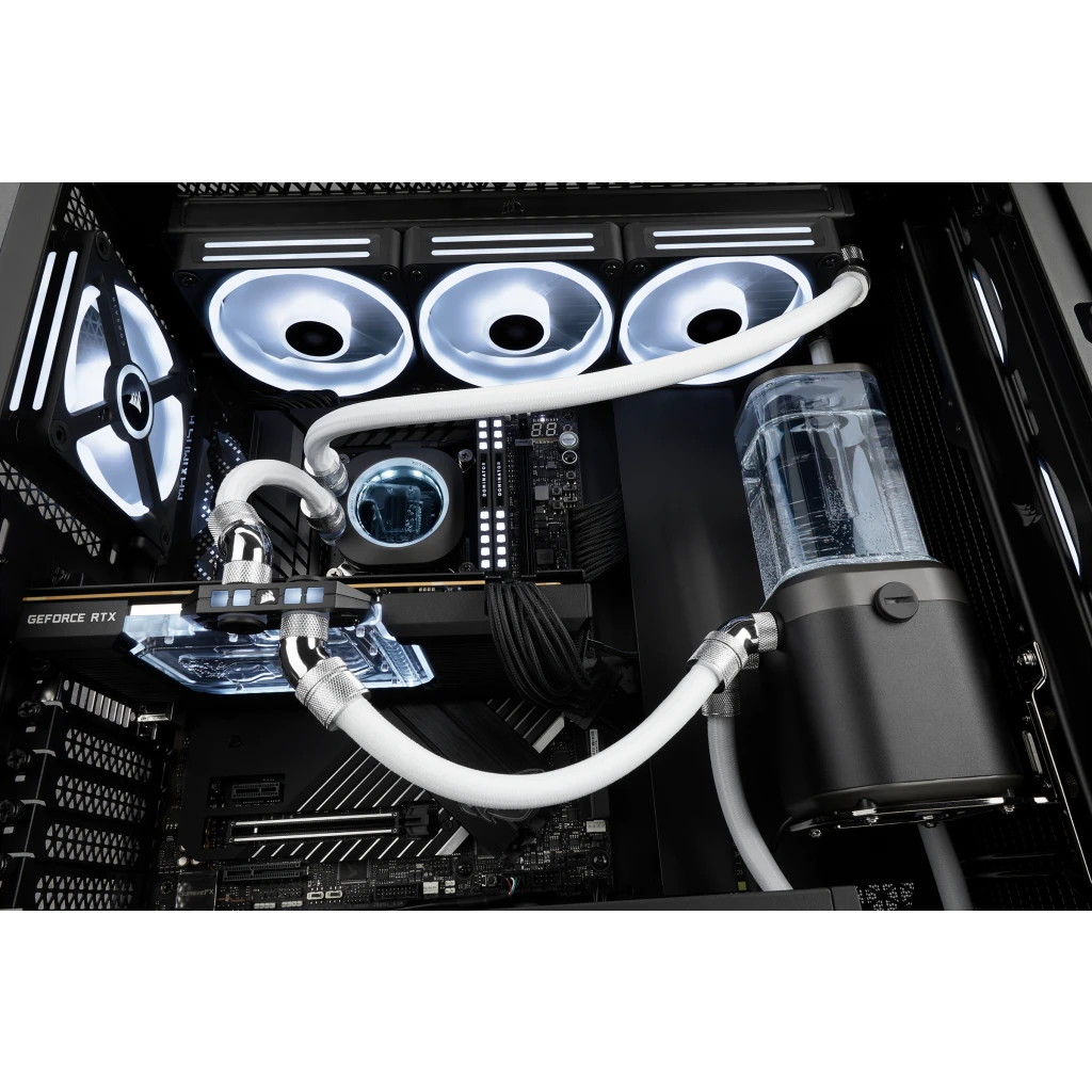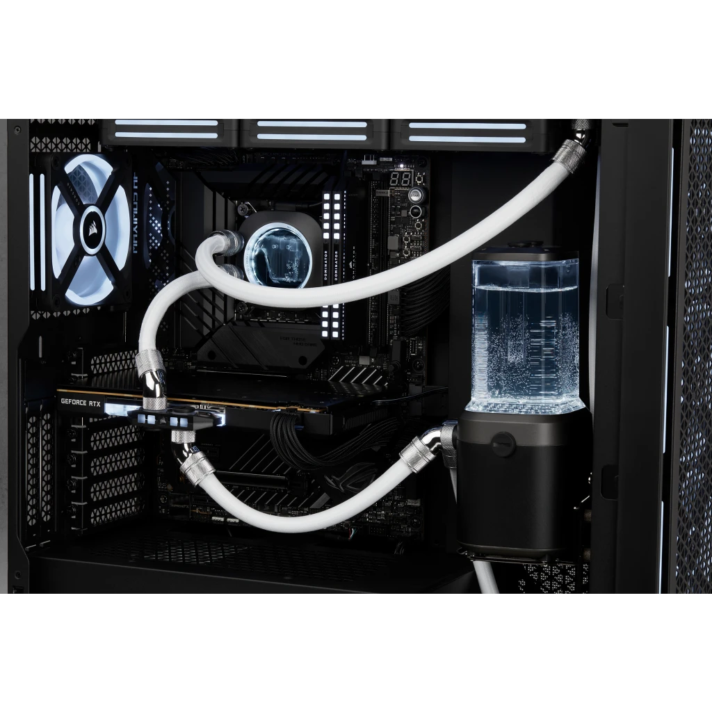 Das CORSAIR Hydro X Series XT Luftdruck-Lecktester-Toolkit ist ein einfaches Testkit, mit dem Sie Ihren individuellen Kühlkreislauf mithilfe von Luftdruck problemlos auf undichte Stellen prüfen können.