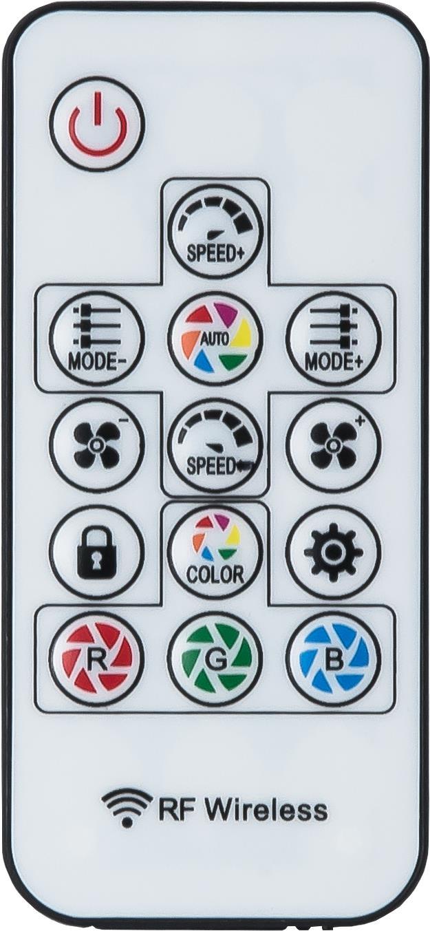 Das CF-3012-RGB 3er-RGB Lüfter Set (Tornado) mit einem patentierten Multifunktions-Hub und der zugehörigen RF Fernbedienung lässt keine individuellen Beleuchtungswünsche offen. Dank des mitgelieferten Multifunktions-Hubs kann die RGB Beleuchtung via Mainboard an einen +5V LED Anschluss oder gänzlich unabhängig, durch einfaches Umschalten, ohne Mainboards mit entsprechendem +5V LED Anschluss gesteuert werden. Jeder Lüfter ist mit 16 adressierbaren LEDs ausgestattet und ermöglicht eine schier unendliche RGB Effektvielfalt, die mit einer herkömmlichen +12V RGB Beleuchtung so nicht möglich ist. Zudem ist jeder Lüfter entkoppelt und durch die spezielle Formgebung der Lüfterblätter auf einen flüsterleisen Betrieb ausgelegt. Die weißen Lüfterblätter sorgen für eine gleichmäßige Ausleuchtung.