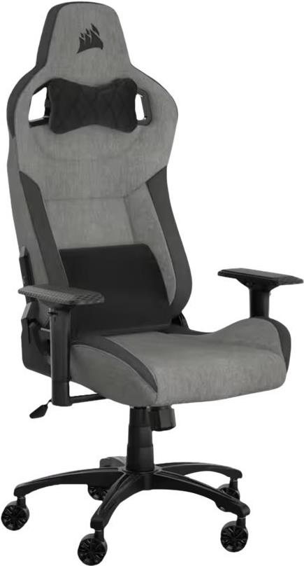 Der CORSAIR T3 RUSH Gaming-Stuhl kombiniert rennsportinspiriertes Design und konturierten Komfort mit einem atmungsaktiven, weichen Stoffbezug, einem gepolsterten Nackenkissen und einer Lendenwirbelstütze aus Memory-Schaum.
