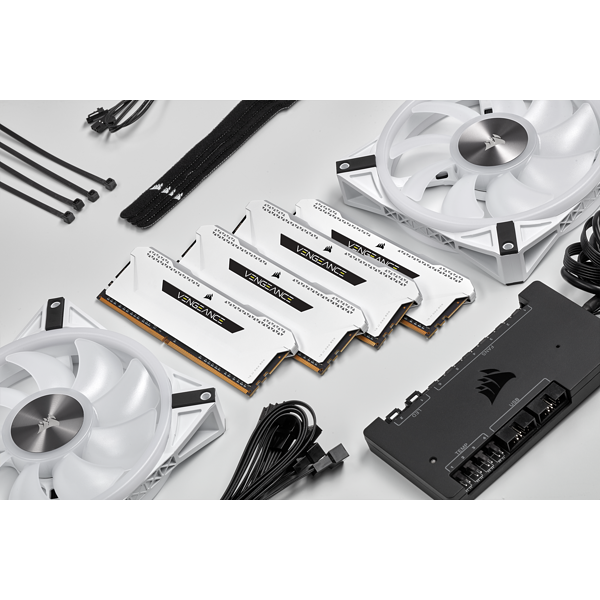 Corsair Vengeance RGB PRO SL - DDR4 - Kit - 32 GB: 4 x 8 GB - DIMM 288-PIN - 3200 MHz / PC4-25600 - CL16 - 1.35 V - ungepuffert - non-ECC - weiß (CMH32GX4M4E3200C16W)