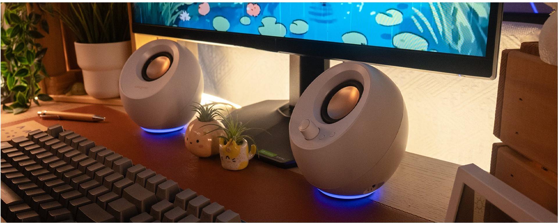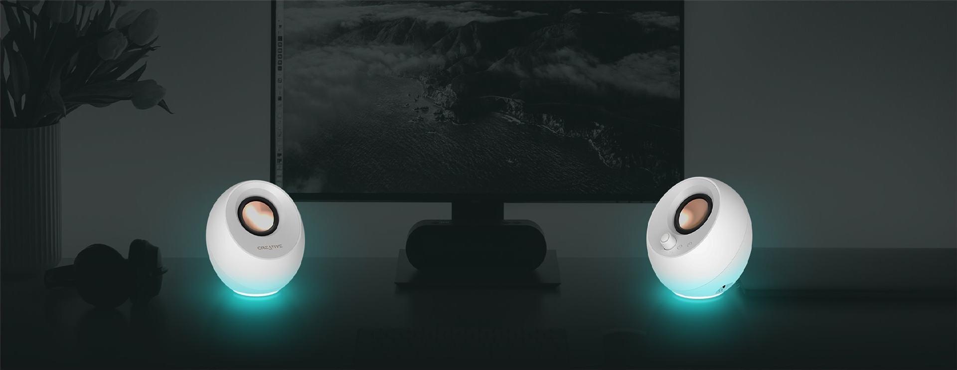 Die Creative Pebble Pro-Lautsprecher wurden speziell für PC-Benutzer entwickelt und bieten ein beeindruckendes Klangerlebnis. Diese kompakten Lautsprecher verfügen über ein angewinkeltes Design, das die Klangprojektion verbessert und jedem Arbeitsbereich einen modernen Touch verleiht. Ausgestattet mit RGB-Beleuchtung, können sie je nach Umgebung und Stimmung einen Farbakzent setzen.