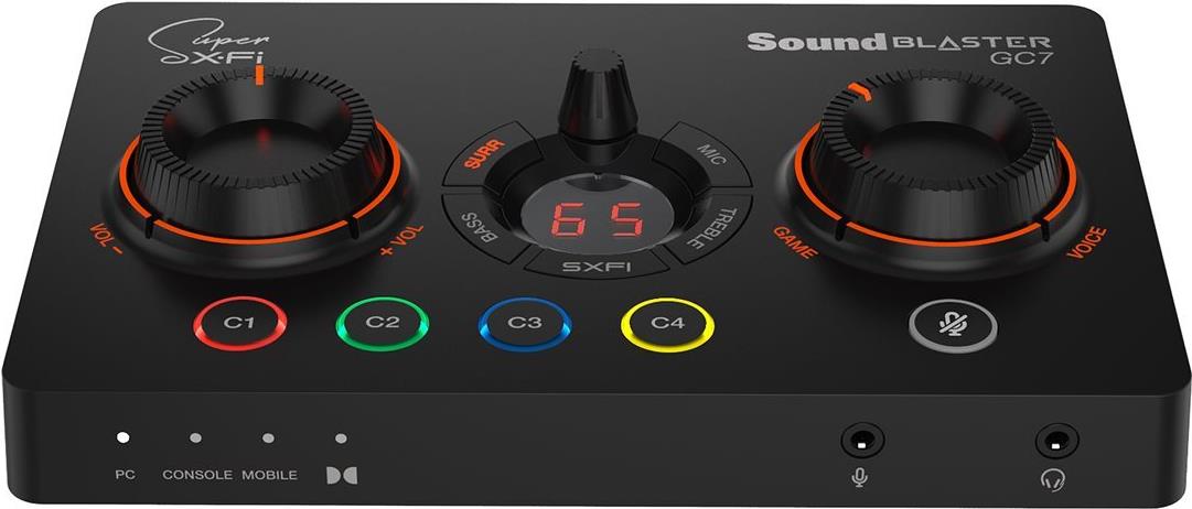 Sie wurde für Audiophile entwickelt und verfügt über einen externen Formfaktor mit intuitiven Hardwarereglern für Verstärkung und Lautstärke, die eine sofortige Anpassung an Ihre Audioanforderungen ermöglichen. Die Konnektivität ist vielseitig und unterstützt USB-C 3.0 und mehrere Eingänge für Mikrofone, Kopfhörer, SPDIF und ADAT, was es zu einem zentralen Hub für alle Ihre Audiogeräte macht. Ganz gleich, ob Sie spielen, Ihre Lieblingsmusik genießen oder Blockbuster-Filme ansehen - die Creative Sound Blaster GC7 ist Ihre Eintrittskarte für ein beeindruckendes Audioerlebnis.