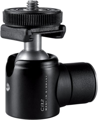 Das kleinste Modell der CB-Kugelkopf-Reihe, der CB2.7, bietet eine Vielzahl von Einsatzmöglichkeiten. Dieser stabile Kugelkopf, der ebenfalls aus Aluminium gefertigt ist, besticht durch seine einzigartige Kombination von Adapterplatten. So kann beispielsweise eine Kompaktkamera über das 1/4"-Kameragewinde und ein Blitz oder Mikrofon über den Standard-Blitzschuh montiert werden.