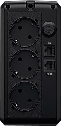 | Besonderheiten | Potenzialfreies Relais, hörbarer Alarm, Automatische Spannungsregelung (Automatic Voltage Regulation, AVR), LED-Anzeiger, Überlastungsschutz, Starterbatterie, generatorkompatibel, GreenPower UPS Bypass Technology, Human Interface Device (HID) Support, interne Strombegrenzungsschaltung |