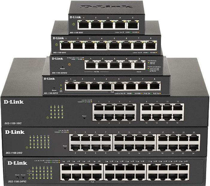 Die Gigabit Smart Managed Switches der DGS-1100V2-Serie von D-Link sind lüfterlos und erzeugen damit keine Geräusche. Surveillance VLAN priorisiert den Datenverkehr beispielsweise bei IP-Videoüberwachung, sodass die Bildqualität auch bei einem hohen Datenaufkommen nicht leidet. Die Smart Managed Switches der DGS-1100V2-Serie sind gezielt auf die Bedürfnisse von KMUs und für den Gebrauch im Small oder Home Office zugeschnitten. Dank Gigabit Ports sorgen die Switches für deutlich mehr Power im Netzwerk.