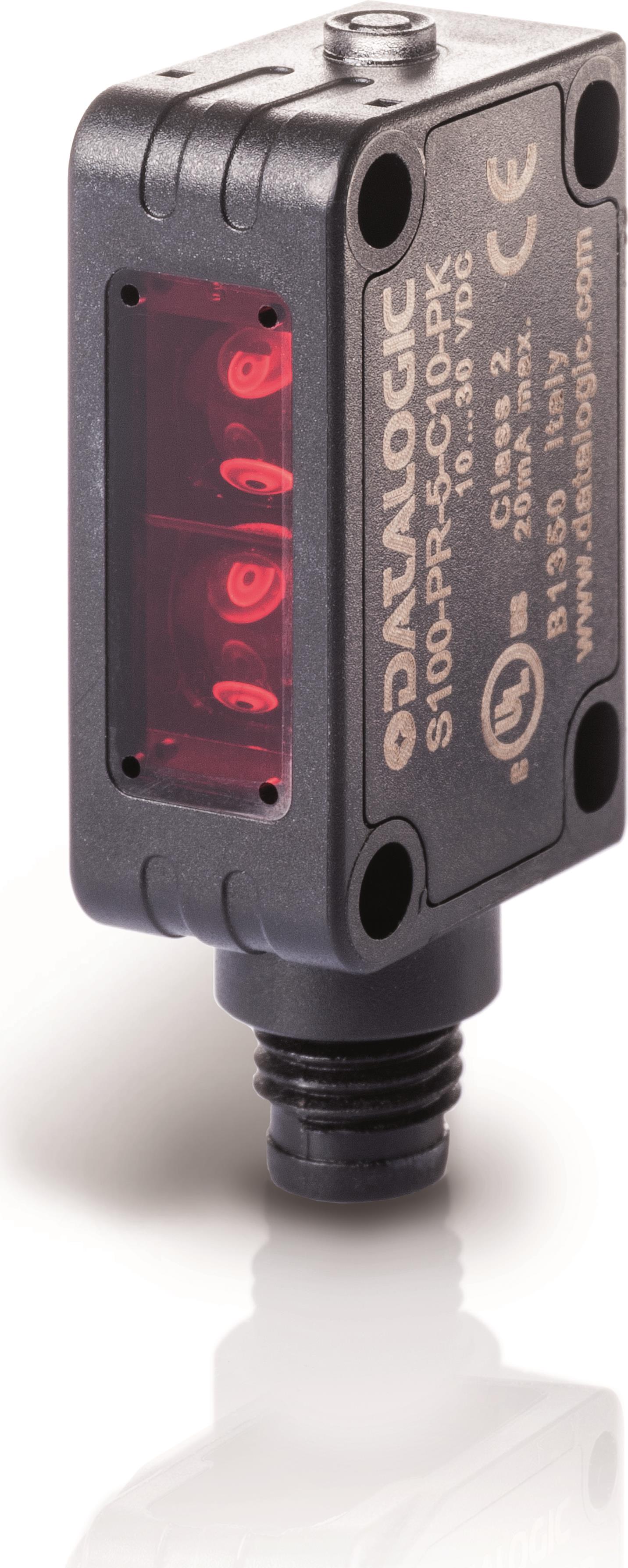 Die Standard Miniatur-Sensor- Reihe S100, ist gerade mal 20 x 32 x 12 mm groß. Um die flexible Installation in Anlagen und Applikationen zu garantieren, sind die Sensoren mit 4 Befestigungsbohrungen versehen.Der Einbau der Sensoren erfolgt ohne Justierungsaufwand schnell und einfach und das Risiko von Manipulationen wird eliminiert. Mit dem neuen ASIC von Datalogic lassen sich die S100 über IO-Link Anschlusstechnik mit dualen Ausgangskanälen und ohne digitalem Ausgangs-Jitter während der Kommunikation programmieren und anpassen. Die Sensor Reihe wird durch den neuen Kontrast Sensor (W00 Modelle) erweitert die schnell, präzise und zuverlässig arbeiten.