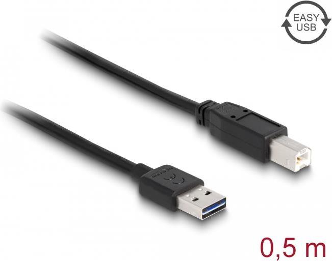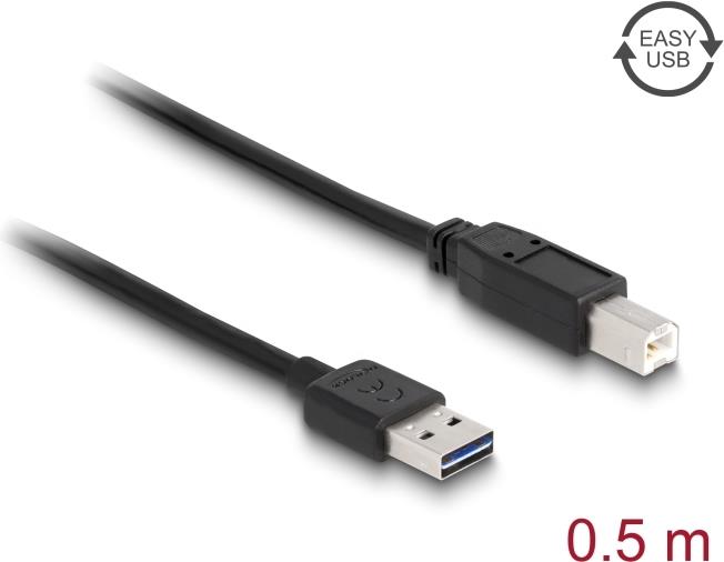 Delock Easy - USB-Kabel - USB (M) umkehrbar zu USB Typ B (M) - USB2.0 - 50cm - Schwarz (83684)