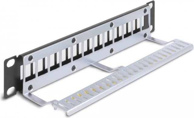 Delock - Patchpanel (Blindblech) - with strain relief - Rack montierbar - Schwarz - 1U - 25,4 cm (10") - 12 Ports (66874)
