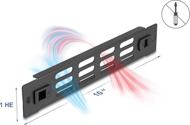 Delock - Rackpaneel - with ventilation slots, tool free - Schwarz - 1U - 25,4 cm (10") (66984)