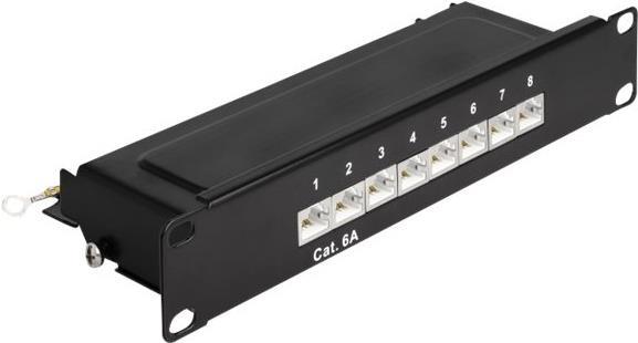Delock - Patch Panel - Rack montierbar - CAT 6a - RJ-45 X 8, LSA X 8 - Schwarz - 1U - 25.4 cm (10")