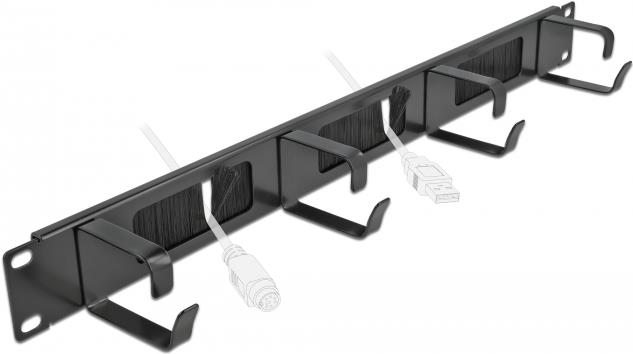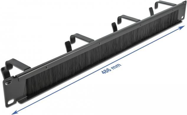 DeLOCK Cable Management Brush Strip with 4 hooks - Kabelführungspanel mit Bürste - Schwarz - 1U - 48,3 cm (19") (66489)