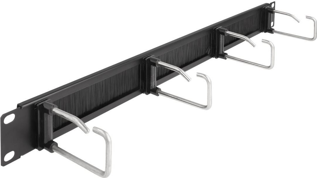 Produktbeschreibung Delock - Kabelführungspanel mit Bürste - with 4 metal hooks - 1U