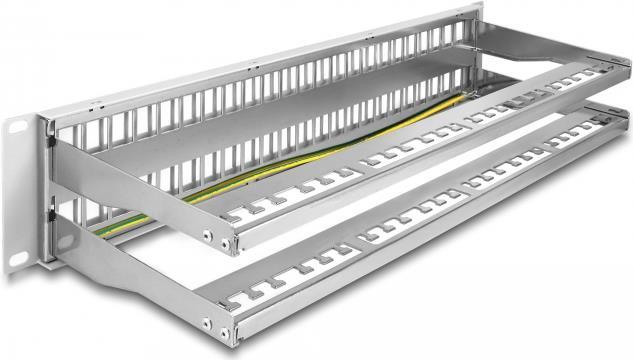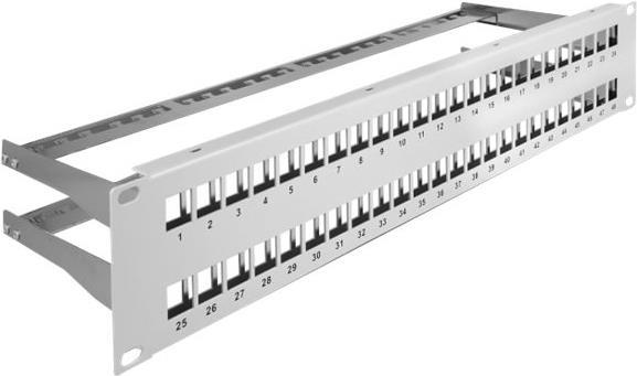 Delock - Patchpanel (Blindblech) - mit Zugentlastungen - Rack montierbar - Grau - 2U - 48.3 cm (19") - 48 Ports