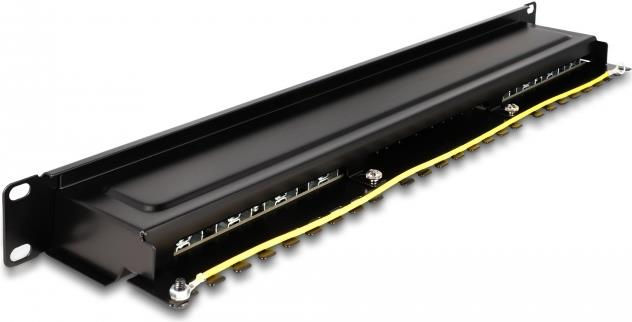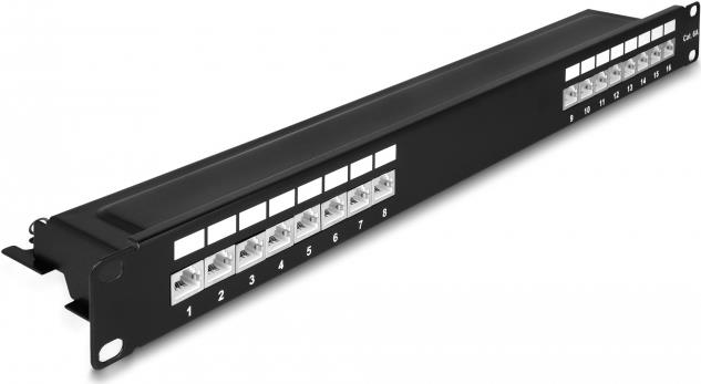 Delock - Patch Panel - Rack montierbar - CAT 6a - RJ-45 X 16, LSA X 16 - Schwarz - 1U - 48.3 cm (19")