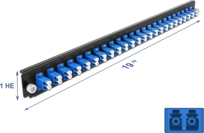 DeLOCK - Rack-Montageblech für Glasfaser-Spleißbox - Vorderseite - LC SM X 24 - Blau - 1U - 48,3 cm (19") (43357)