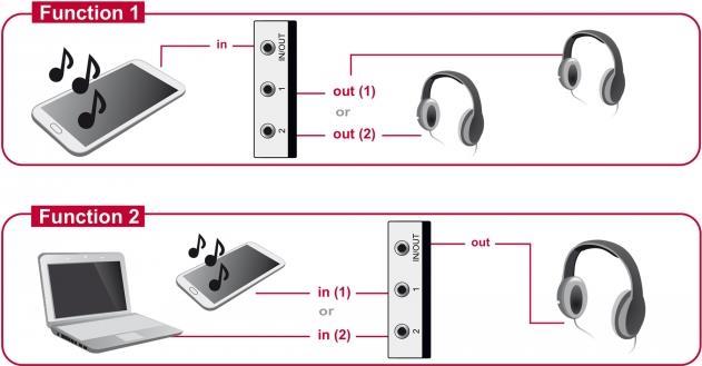 Dieser Delock Klinke 3,5 mm Umschalter ist ein manueller bidirektionaler Umschalter zur Verbindung verschiedener Audiogeräte, der zwei verschiedene Einsatzmöglichkeiten bietet.1. Es können bis zu zwei Geräte mit Klinke Anschluss, wie z. B. Kopfhörer, an einer Audioquelle angeschlossen werden. Per Knopfdruck lässt sich das Gerät auswählen, welches das Audiosignal wiedergeben soll. (Eine gleichzeitige Ausgabe auf mehreren Geräten ist nicht möglich)2. Es können bis zu zwei Geräte mit Klinke Anschluss, wie PC, Laptop oder MP3 Spieler, angeschlossen werden und am Ausgang kann ein Kopfhörer angeschlossen werden. Per Knopfdruck kann ausgewählt werden, von welchem Gerät das Audiosignal am Kopfhörer wiedergegeben werden soll.Hauptmerkmale