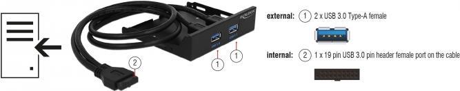 Es handelt sich um einen Einschub für den 3,5" Schacht, welcher 2 USB Typ A-Anschlüsse
