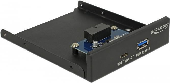Dieses USB 3.0 Frontpanel von Delock dient dem Einbau in einen freien 3.5" Schacht eines Computers und kann intern an einen freien USB 3.0 Pfostenstecker angeschlossen werden. Es erweitert das System um eine USB Type-C und eine USB Typ-A Buchse.