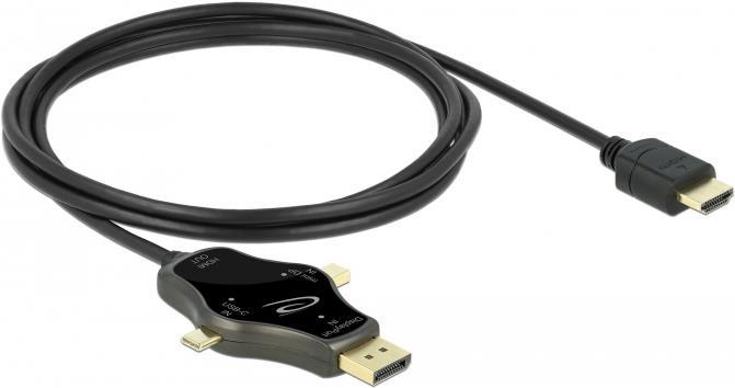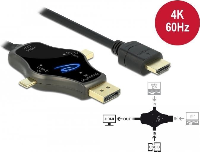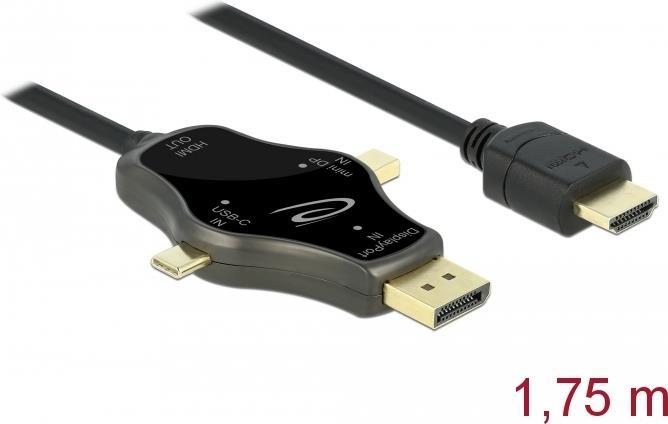 Dieses Monitorkabel von Delock kann wahlweise an eine USB Type-C, DisplayPort oder mini DisplayPort Schnittstelle angeschlossen werden, die Ausgabe erfolgt über den HDMI Anschluss.
