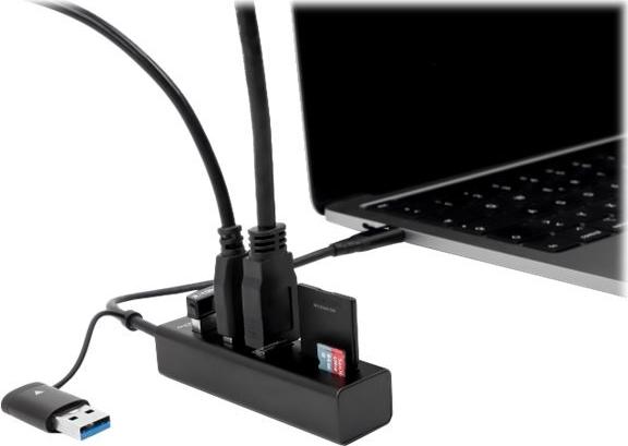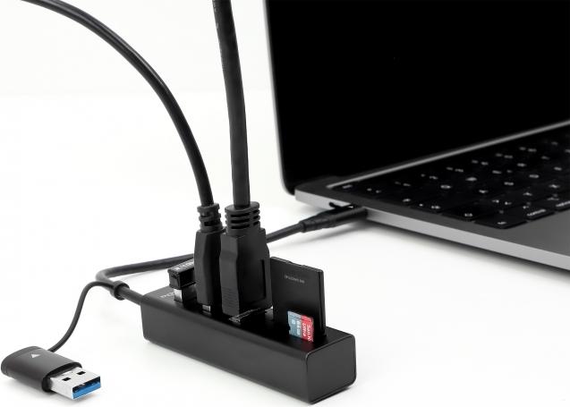 Dieser stabile USB Hub von Delock im Metallgehäuse wird an einen Computer, Notebook oder Mobilgerät, über den USB Typ-A oder USB-C Anschluss, angeschlossen. Es können bis zu 3 USB Geräte mit dem Hub verbunden werden.