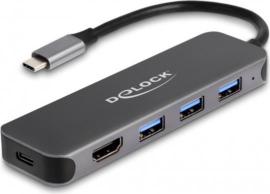 Der USB Hub von Delock ist der mobile Begleiter für Notebooks, Smartphones oder Tablets mit USB Type-C Anschluss. Es können 3 USB Typ-A Geräte mit dem Hub verbunden werden. Am HDMI Ausgang kann ein Monitor mit einer maximalen Auflösung 4K 30 Hz betrieben werden.