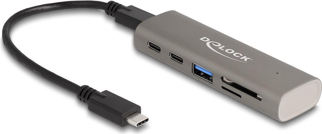 DeLOCK 3 Port USB 10 Gbps Hub inklusive SD und Micro SD Card Reader mit USB Type-C™ Anschluss - USB 3.2 Gen 1 (3.1 Gen 1) Type-C - USB 3.2 Gen 1 (3.1 Gen 1) Type-A - USB 3.2 Gen 1 (3.1 Gen 1) Type-C - MicroSD (TransFlash) - MicroSDHC - MicroSDXC - SD - SDHC - SDXC - 10000 Mbit/s - Grau - Metall (64236)