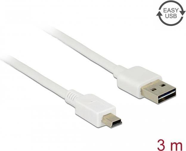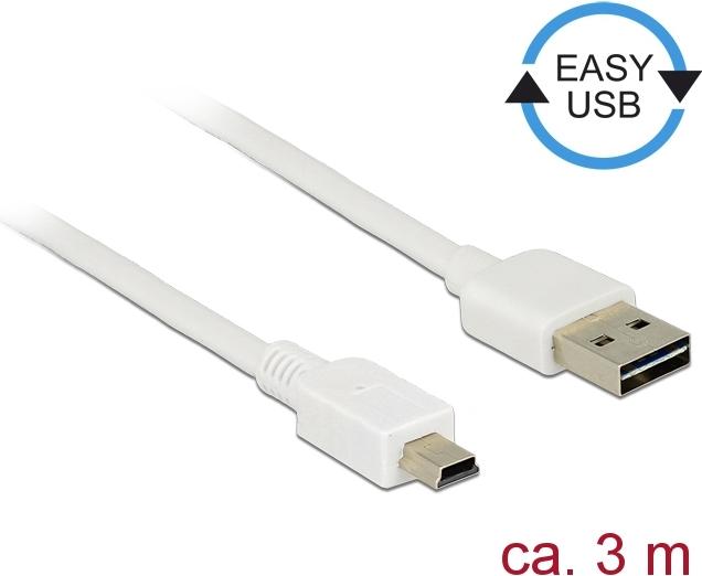 DeLOCK Easy - USB-Kabel - USB (M) umkehrbar bis mini-USB Typ B (M) - USB2.0 - 3,0m - weiß (85161)