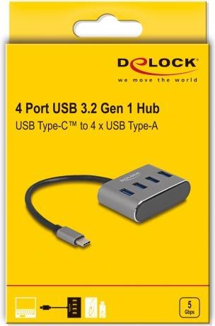 Dieser solide USB-Hub von Delock mit Metallgehäuse kann über die USB-Typ-C-Schnittstelle mit einem Computer, Laptop oder Mobilgerät verbunden werden. Er erweitert den Computer um 4 USB Typ-A Ports. Es können verschiedene USB-Geräte wie USB-Flash-Speicher, Kartenleser, externe Gehäuse usw. angeschlossen werden.