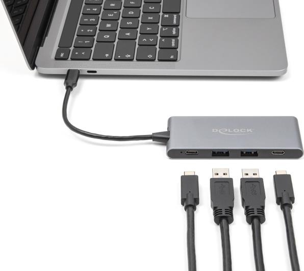 Der Delock USB-C Hub bietet Konnektivität und Vielseitigkeit in kompaktem Design. Mit einem 15 cm langen USB-C-Kabel ermöglicht dieser Hub den mühelosen Anschluss einer Vielzahl von Geräten. Er verfügt über insgesamt vier Anschlüsse, darunter zwei USB 3.2 Gen 2 Typ-A- und zwei USB-C 3.2 Gen 2-Anschlüsse, die eine Hochgeschwindigkeitsdatenübertragung mit bis zu 10 Gbit/s ermöglichen. Das Aluminiumgehäuse sorgt für Langlebigkeit, während die LED-Statusanzeige den Benutzer über den Betriebsstatus des Hubs informiert. Der Delock USB-C Hub ist Plug-and-Play-kompatibel und gewährleistet eine reibungslose Einrichtung und zuverlässige Leistung für den Desktop-Einsatz. Dieses Gerät wurde für Benutzer entwickelt, die schnellen Datenzugriff und eine nahtlose Verbindung zu mehreren Peripheriegeräten benötigen, um ihre Produktivität bei privaten und beruflichen Aufgaben zu steigern.