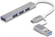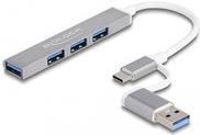Delock 4 Port Slim USB Hub mit USB Type-C™ oder USB Typ-A zu 3 x USB 2.0 Typ-A Buchse + 1 x USB 5 Gbps Typ-A Buchse (64214)