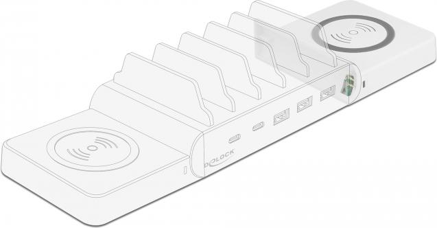 Dieses kabellose Ladegerät von Delock ist ein Zubehör für das Delock USB Ladegerät 41450, das für den Anschluss vorbereitet ist. Damit kann das Ladegerät um ein zweites kabelloses Lademodul erweitert werden.