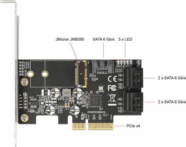 DeLOCK PCI Express Card x4 > 5 x internal SATA 6 Gb/s - Speicher-Controller - SATA 6Gb/s Low-Profile - 6 Gbit/s - PCIe 3.0 x4 (90395)