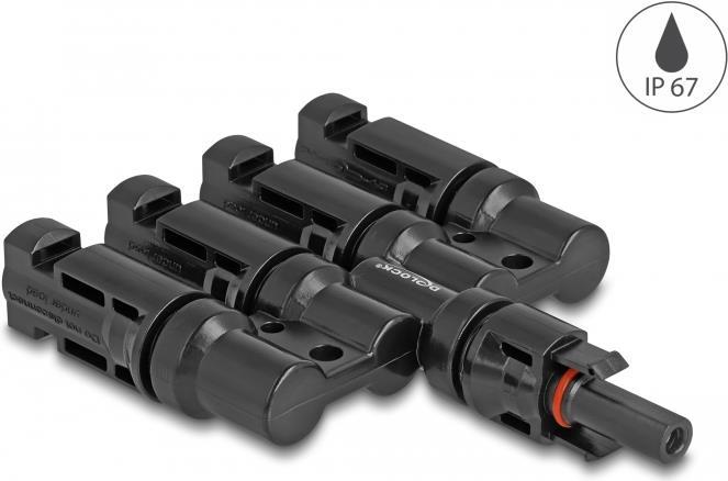 Entdecken Sie das Delock-Solarmodulanschlusskabel, eine widerstandsfähige und vielseitige Lösung für Ihren Solarstrombedarf. Es wurde für den Einsatz unter anspruchsvollen Bedingungen entwickelt und funktioniert einwandfrei über ein breites Temperaturspektrum von -40°C bis 85°C. Dieses Kabel ist nicht nur widerstandsfähig, sondern auch intelligent: Es verfügt über eine Einrastfunktion, die sichere Verbindungen zwischen den Komponenten gewährleistet und die Installation und Wartung vereinfacht. Die Einhaltung der IP67-Norm spricht für seine Fähigkeit, Staub und Wasser zu widerstehen, und gewährleistet Zuverlässigkeit in unterschiedlichen Umgebungen. Ganz gleich, ob Sie eine neue Solaranlage errichten oder ein bestehendes System aufrüsten möchten, die verschiedenen Querschnitte und geschlechtsspezifischen Stecker dieses Kabels bieten die Flexibilität und Sicherheit, die Ihr System benötigt. Nutzen Sie die Kraft der Sonne mit Zuversicht - dank dieses sorgfältig entwickelten Kabels.