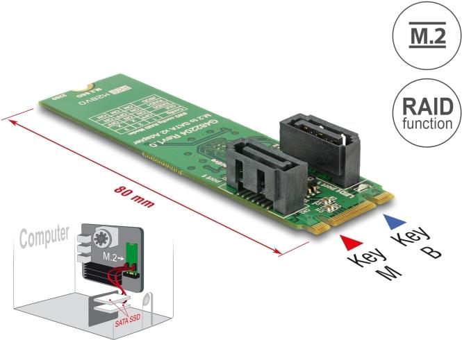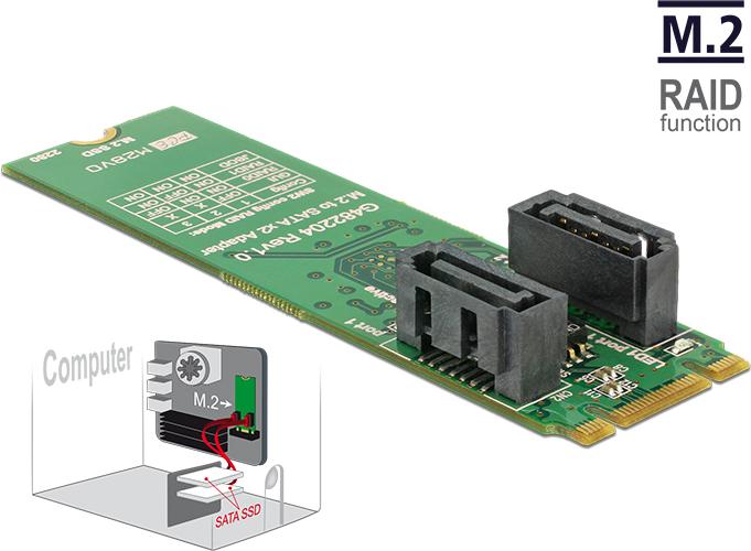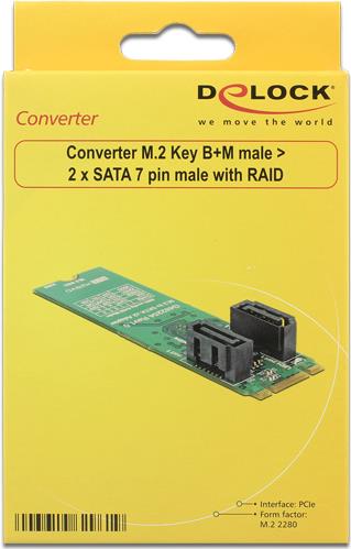 DeLOCK - Speichercontroller (RAID) - 2 Sender/Kanal - SATA 6Gb/s - 600 MBps - RAID 0, 1, JBOD - M.2 Card