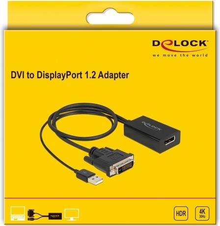 Mit diesem Adapter von Delock kann z. B. ein DisplayPort Monitor an eine freie DVI Schnittstelle des Systems angeschlossen werden.